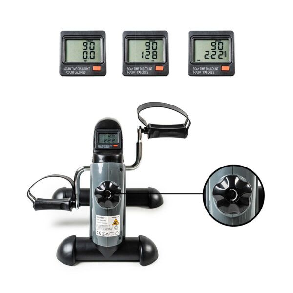 Pedalni vadbenik za roke in noge z dvojnim LCD digitalnim števcem je idealen za starejše osebe, ki želijo vaditi brez napora. Ima regulator intenzivnosti za prilagajanje odpornosti pedala in nedrsečo podlogo. Največja dovoljena teža: 100 kg.