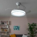 Moderen in tih stropni ventilator s svetilko, ki nudi hlajenje poletje-zima ter hladno, toplo in nevtralno svetlobo. Njegova rezila je mogoče zložiti in skriti. Velikost sobe: 10-20 m².