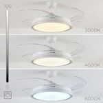 Ta stropni ventilator z RGB LED‑svetlobo in zložljivimi lopaticami združuje udobje, slog, moč in učinkovitost ter ustvari popolnoma prilagojeno vzdušje. Ima osrednjo LED‑luč s 3 barvnimi toni in nastavljivo jakostjo ter RGB‑obroč s 7 barvami in 8 dinamičnimi sekvencami. Tih, 6 hitrosti, časovnik, poletni/zimskI način, enosmerni motor (DC) in daljinski upravljalnik za udobno upravljanje. Idealen za prostore do 25 m².