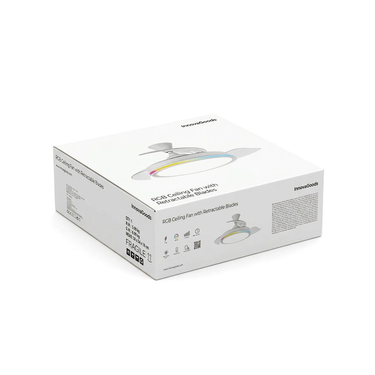 Stropni ventilator z RGB LED osvetlitvijo, 4 zložljivimi lopaticami in daljinskim upravljalnikom InnovaGoods