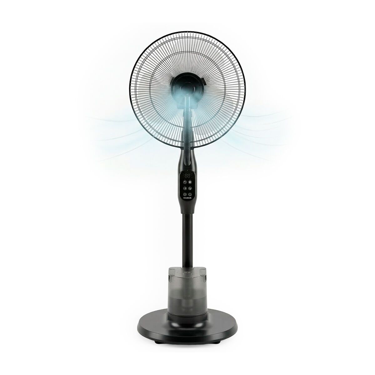 Ta ventilator z megličenjem s 3 stopnjami intenzivnosti premaguje visoke temperature in v domu ustvarja popolnoma sveže, prijetno okolje. Njegov tih, učinkovit 90 W bakreni motor s 3 hitrostmi ustvarja močan in stalen pretok zraka. Za večje udobje ga lahko programirate (časovnik) in preprosto premikate (osnovno ogrodje s kolesi). Enostavno upravljanje prek upravljalne plošče na dotik ali z daljinskim upravljalnikom. 3 načini. Rezervoar: 3 l.